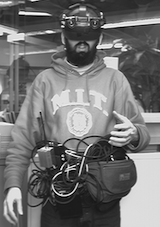 Ο Steve Mann φορώντας τη συσκευή φορετού υπολογιστή (wearable computer) που κατασκεύασε.