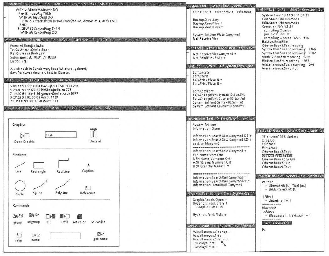 Το σύστημα Oberon βασίζεται στις ιδέες του Xerox Cedar και δίνει έμφαση στην εκπαιδευτική κοινότητα με στόχο ένας χρήστης να μπορεί να κατανοήσει την λειτουργία της διάδρασης πλήρως και χωρίς να γίνονται διακρίσεις ανάμεσα σε γλώσσα προγραμματισμού, λειτουργικό σύστημα, και εφαρμογές. Για αυτόν τον σκοπό, χρησιμοποιεί την γλώσσα προγραμματισμού Oberon στην οποία είναι γραμμένο όλο το σύστημα και η διάδραση βασίζεται σε έναν συνδυασμό γραφικής διεπαφής και γραμμής εντολών.